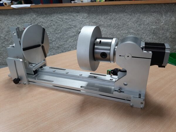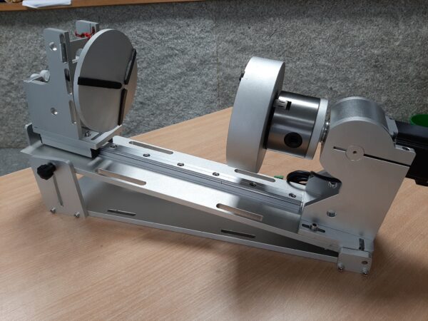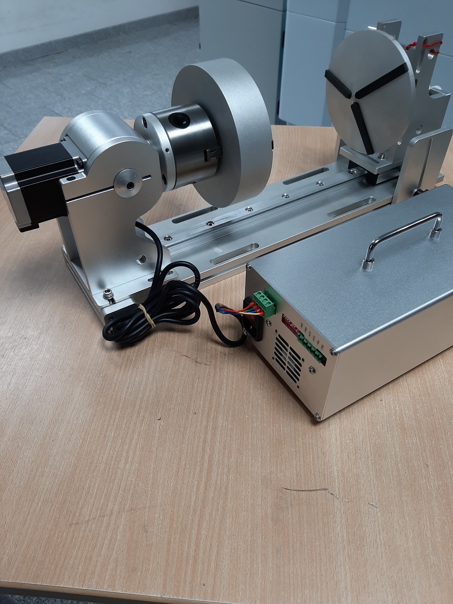 Die Laser Rotationseinheit D220 kann für 360° Gravuren auf Wellen, Bolzen, Ringen usw. verwendet werden. Sie ist in Verbindung mit den Gravierlaseren LD-1390 und LD-1610 und UV Laser RFH einsetzbar.